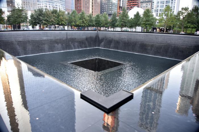 El Jefe de Estado se detuvo en el área donde están ubicadas las dos fuentes que marcan los espacios que antes ocuparon las torres derribadas por el terrorismo el 11 de septiembre de 2001. La caída incesante del agua, los bordes oscuros —donde están grabados los nombres de las víctimas—, el sonido del viento frío rasgado por sonidos lejanos de la urbe, invitaban a la meditación, a la reverencia sobria.