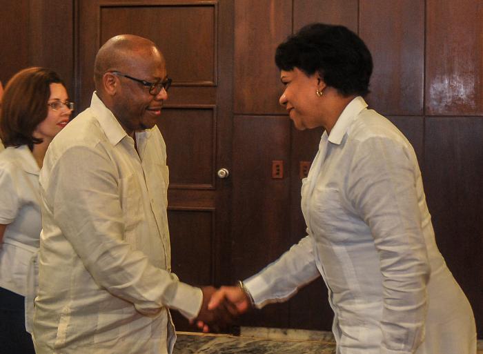 Inés María Chapman Waugh, vicepresidenta de los Consejos de Estado y de Ministros, recibió este viernes al ministro de Asuntos Exteriores y Relaciones Internacionales del Reino de Lesotho, Honorable Lesego Makgothi, quien se encuentra en Cuba en visita oficial.