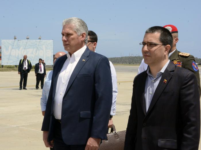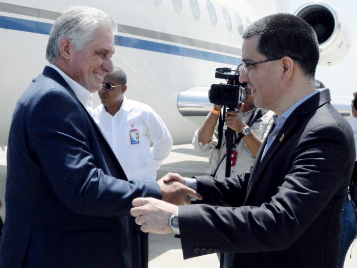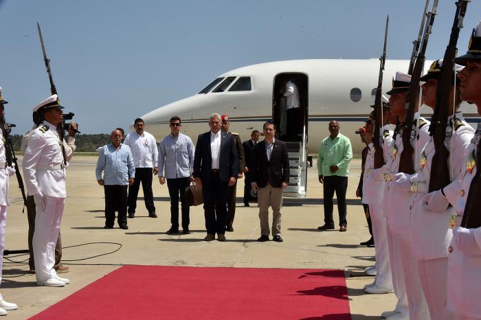 A su llegada al aeropuerto internacional de Maiquetía, Díaz-Canel fue recibido por Jorge Arreaza Montserrat, ministro del Poder Popular para las Relaciones Exteriores de la República Bolivariana de Venezuela, con los honores militares correspondientes a su alta investidura.