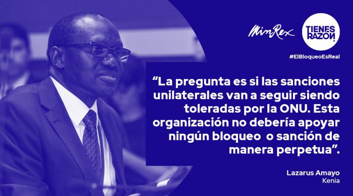 El representante de Kenia hizo un llamado a no permitir que las sanciones y los bloqueos de ningún tipo menoscaben la autodeterminación de Cuba, es por ello que su país siempre ha votado a favor de la resolución que año tras año se presenta en Naciones Unidas.