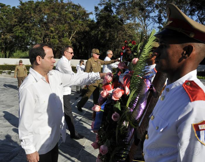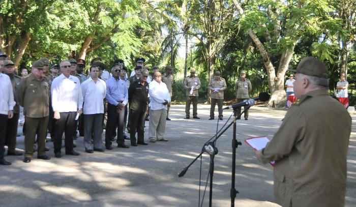 La conmemoración, presidida por el miembro del Buró Político del Partido, general de cuerpo de Ejército Álvaro López Miera, viceministro primero y jefe del Estado Mayor General de las Fuerzas Armadas Revolucionarias (FAR), contó con la presencia de Fernando González Llort, Héroe de la República de Cuba y presidente del Instituto Cubano de Amistad con los Pueblos (ICAP); así como de los embajadores de Rusia y de la República de Belarús en Cuba, jefes y oficiales de las far y del Ministerio del Interior; y una representación del cuerpo diplomático militar acreditado en la Isla.