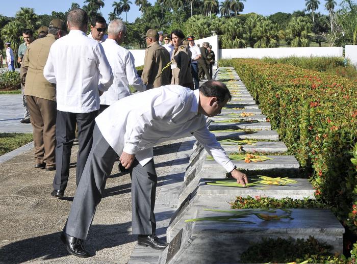Con el propósito de honrar a los mártires de la Gran Revolución Socialista de Octubre en el aniversario 102 de su histórica victoria, este 7 de noviembre tuvo lugar una ceremonia militar de colocación de ofrendas florales en el Mausoleo al Soldado Internacionalista Soviético, en la capital, sitio donde descansan los restos de jóvenes de la antigua URSS fallecidos en Cuba.