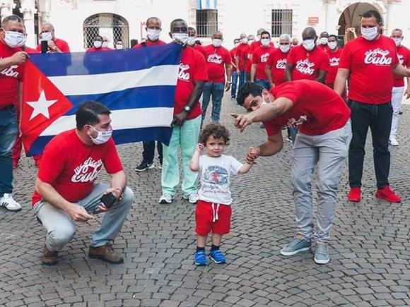 Con los himnos nacionales de Cuba e Italia comenzó la actividad en la cual el embajador agradeció la iniciativa, al tiempo que manifestó un reconocimiento especial para el personal sanitario italiano por el papel desempeñado en el enfrentamiento a la pandemia.