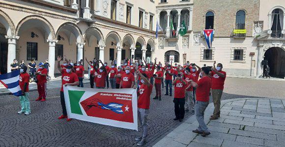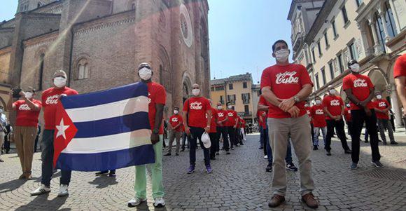 La céntrica Plaza del Duomo sirvió de escenario para el homenaje a los 52 integrantes de la brigada médica Henry Reeve que cumplieron la noble misión, junto a sus colegas italianos, durante dos meses.