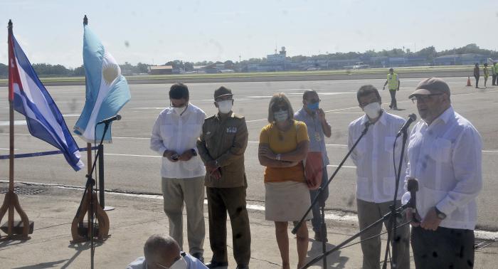 Por otra parte, la titular del Ministerio de Ciencia, Tecnología y Medio Ambiente (CITMA) de Cuba, Elba Rosa Pérez Montoya, agradeció en nombre del gobierno y pueblo antillano la solidaridad argentina, «apreciamos altamente los insumos médicos, que deben contribuir a minimizar los efectos del SARS-COV 2 en nuestro pueblo» y precisó que de manera inmediata estarán a disposición de los centros hospitalitos para seguir luchando por la vida de cada cubano.