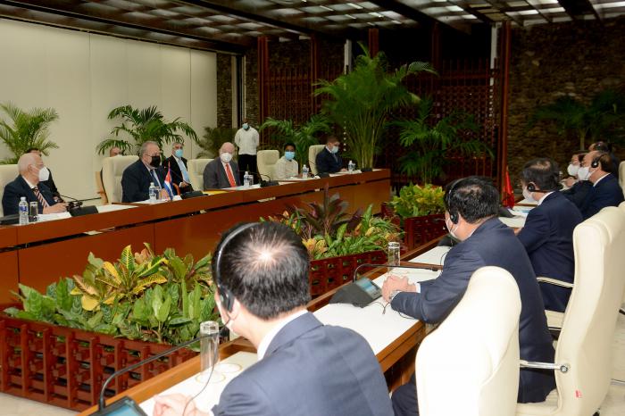El también miembro del Buró Político del Comité Central del Partido Comunista del país asiático, expresó sus muestras de cariño al Primer Ministro de la República de Cuba, Manuel Marrero Cruz, quien le dio la bienvenida en el capitalino Salón de Protocolo del Laguito.