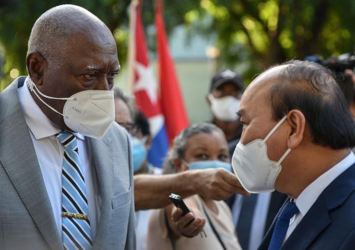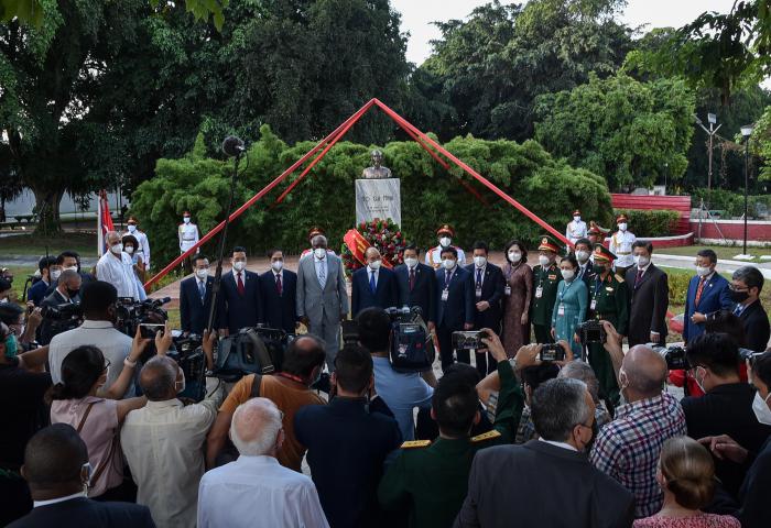 El presidente de la República Socialista de Vietnam, Nguyen Xuan Phuc, y el miembro del Buró Político y vicepresidente de la República de Cuba, Salvador Valdés Mesa, rindieron tributo a los héroes nacionales José Martí y Ho Chi Minh.