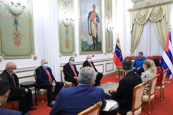 CARACAS, Venezuela.–«Cuba y Venezuela afianzamos la unión y la cooperación por el desarrollo conjunto», comentó Nicolás Maduro en su perfil de Twitter, tras recibir en el palacio de Miraflores de esta capital, a una delegación cubana encabezada por el viceprimer ministro, Jorge Luis Tapia Fonseca.
