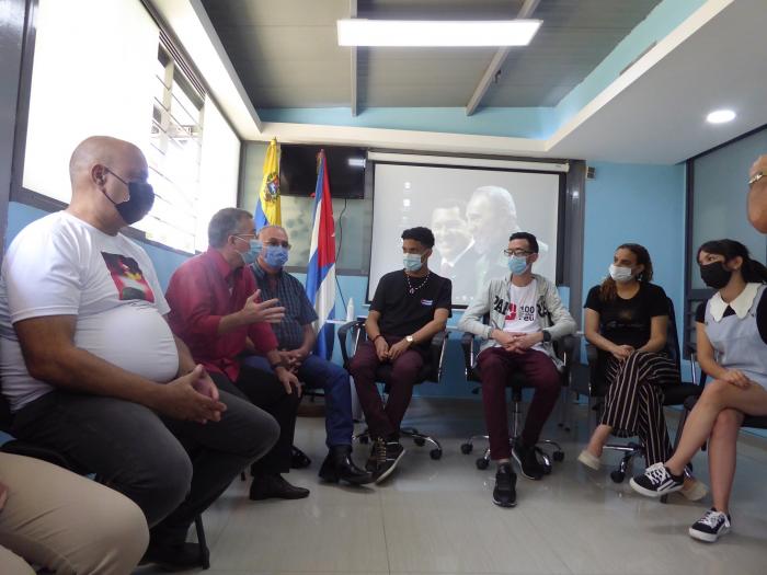 Los escucharon emocionados, Meivys Estévez, miembro del Buró Nacional de la UJC, Leonel Pérez, presidente de la Organización Continental Latinoamericana y Caribeña de Estudiantes (Oclae), y los también líderes estudiantiles, Carla Santana, de la FEU, y Hamlet Álvarez, de la FEEM.