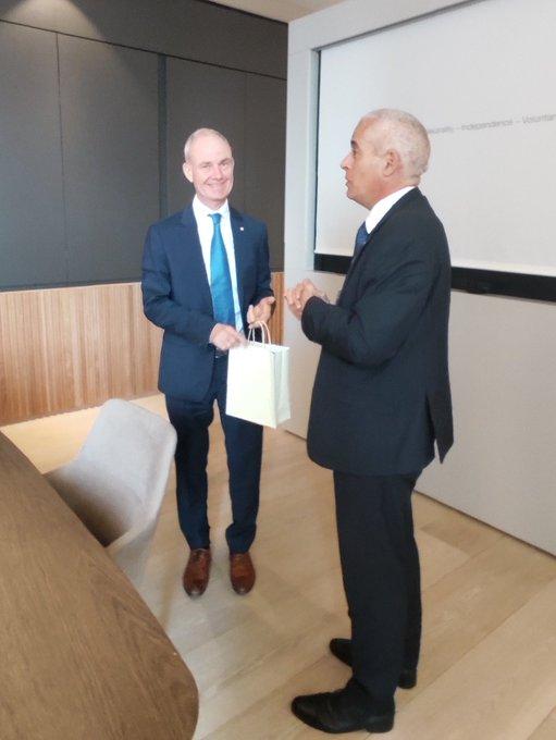 Ratifiqué compromiso de #Cuba con el Derecho Internacional Humanitario, durante el intercambio que sostuve con el Sr. Gilles Carbonnier, vicepresidente del Comité Internacional de la Cruz Roja y la Media Luna Roja, en la sede de esta prestigiosa organización en Ginebra. pic.twitter.com/5zJdtLdbDH
