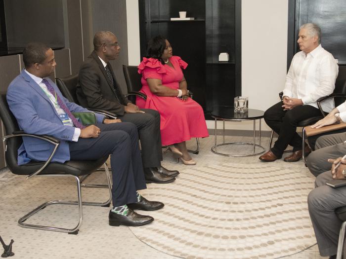 En el encuentro, en el cual se confirmó la voluntad compartida de trabajar por la unidad e integración regionales, el Jefe de Estado agradeció a los hermanos caribeños el apoyo manifestado a la Resolución cubana contra el bloqueo económico, comercial y financiero impuesto por Estados Unidos, que fue presentada recientemente en la Asamblea General de las Naciones Unidas.