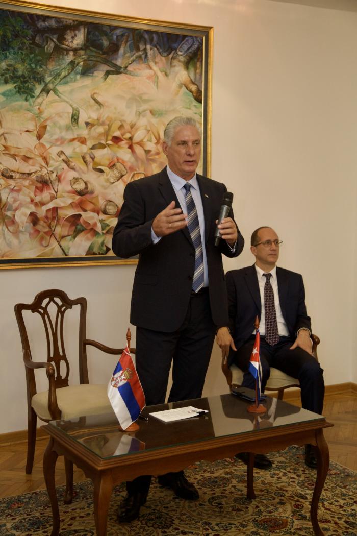 En el intercambio, en la Sociedad de Amistad Serbio-Cubana, se agradeció al Presidente de la Mayor de las Antillas por convocar a este encuentro, a pesar de su cargada agenda en poco menos de 24 horas en Belgrado.