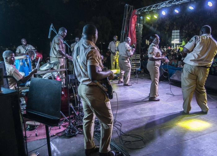 Los habaneros disfrutaron recientemente en la céntrica esquina de Prado y Neptuno del ritmo Calisso, interpretado por la Banda de los Servicios Correccionales de Bahamas, como parte de las celebraciones del aniversario 50 de la independencia de ese país caribeño.
