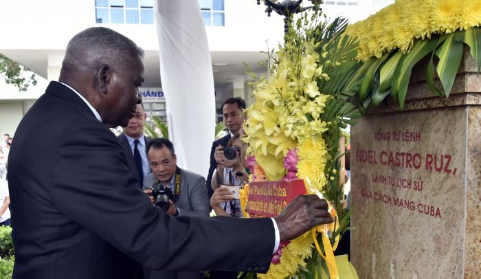 Como primera actividad, Esteban Lazo colocó una ofrenda floral ante el busto dedicado al Comandante en Jefe, ubicado en la entrada principal de esta instalación. Luego, conversó con sus pacientes sobre la historia común de ambos pueblos, indagó si conocían la historia de esta institución sanitaria, sobre quiénes fueron Fidel y Ho Chi Minh, y sobre cómo defender su legado y la hermandad entre nuestras naciones. Los vietnamitas agradecieron profundamente la solidaridad de Fidel y de Cuba, y expresaron que ese amor entre ambos pueblo perdurará por siempre.