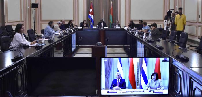 Participaron también por la parte cubana Ana María Mari Machado y Homero Acosta Álvarez, vicepresidenta y secretario de la Asamblea Nacional del Poder Popular, respectivamente; y Teresa González Barea, titular del Grupo Parlamentario de Amistad Cuba-Belarús y vicepresidenta de la Comisión de Asuntos Económicos del Parlamento cubano.