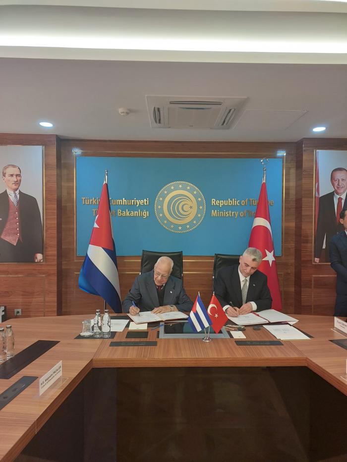 Durante el día de hoy, el vice primer ministro cubano se reunió con los Excmo. Sr. Ömer Bolat, ministro de Comercio, con quien firmó un acuerdo que establece una Agenda Económica bilateral para el período 2024-2026; y con el Excmo. Sr. Hakan Fidan, ministro de Relaciones Exteriores, a quien agradeció el tradicional respaldo de Türkiye a las resoluciones cubanas contra el bloqueo económico, comercial y financiero impuesto por los EE.UU. contra Cuba, en el contexto de la Asamblea General de Naciones Unidas. Ambos titulares estuvieron acompañados de altos directivos de sus respectivas instituciones.