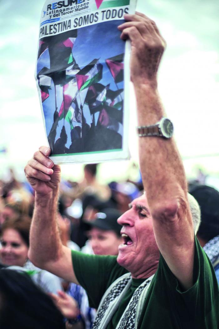 Le enorgullece el gran apoyo político, una de cuyas más claras manifestaciones es que el máximo dirigente de Cuba encabece las marchas para condenar el genocidio. «Aquí, nada más de saber que soy palestino, me dan un abrazo, y me dicen que no estoy solo. Este es el sentimiento que nos une».