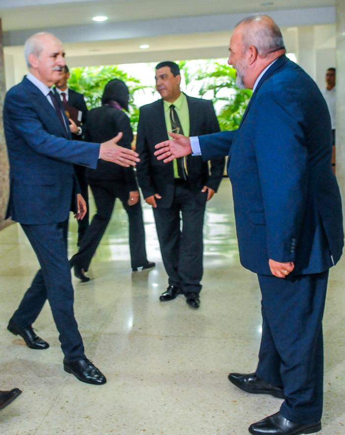 Una intensa, pero cálida agenda de trabajo sostuvo este miércoles, en La Habana, el presidente de la Gran Asamblea Nacional de Türkiye, Numan Kurtulmuş, quien intercambió con los miembros del Buró Político del Partido Comunista de Cuba, Esteban Lazo Hernández, presidente de la Asamblea Nacional del Poder Popular; Manuel Marrero Cruz, primer ministro; y Salvador Valdés Mesa, vicepresidente del país.