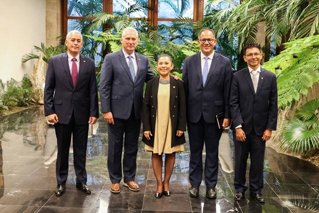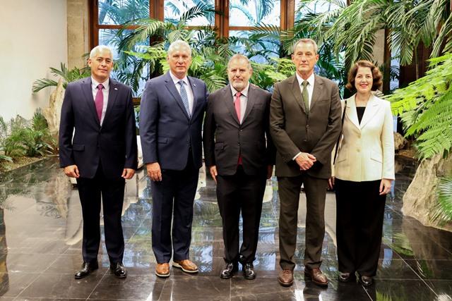 El Primer Secretario del Comité Central del Partido Comunista y Presidente de la República, Miguel Díaz-Canel Bermúdez, recibió ayer las cartas que acreditan a representantes de siete países como embajadoras o embajadores extraordinarios y plenipotenciarios en Cuba.