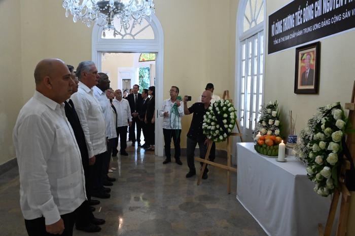En la sede diplomática de Vietnam en Cuba se rindió honores al secretario general del Partido Comunista de Vietnam, Nguyen Phu Trong, con la firma de un libro de condolencias por su fallecimiento. En representación del Gobierno y el pueblo cubanos, firmó el Primer Secretario del Comité Central del Partido y Presidente de la República de Cuba, Miguel Díaz-Canel Bermúdez.