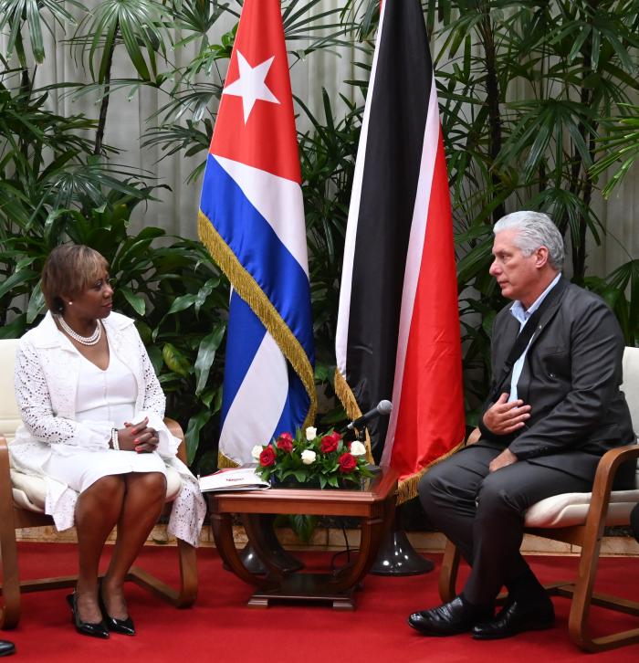 «Es un placer, es una enorme satisfacción recibirla», le expresó Díaz-Canel Bermúdez a la distinguida visitante, y añadió que «nos parece muy importante esta visita de la Cámara de Representantes de Trinidad y Tobago, un país caribeño con el que tenemos excelentes relaciones. Nos tratamos como hermanos en el Caribe».
