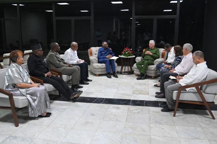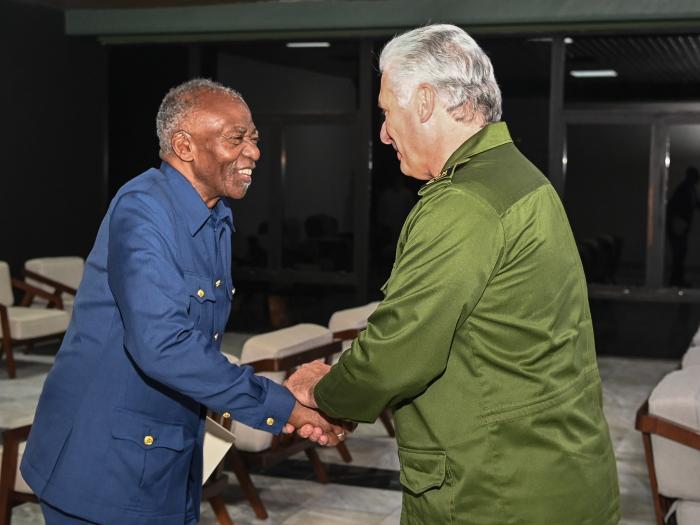 «Estimado amigo, para nosotros es un gran placer su visita, que es la reafirmación de las históricas relaciones que existen entre nuestros parlamentos, gobiernos y pueblos», aseguró en la noche de este miércoles el Primer Secretario del Comité Central del Partido Comunista y Presidente de la República, Miguel Díaz-Canel Bermúdez, a Peter Katjavivi, presidente de la Asamblea Nacional de Namibia.