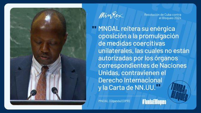 El canciller de Uganda, Jeje Odongo, expresó, en nombre del Movimiento de países no Alineados (MNOAL), la solidaridad con el gobierno cubano.