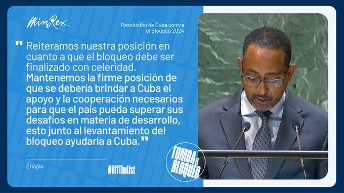 El representante de Etiopía significó que el bloqueo impuesto a Cuba ha tenido consecuencias para el desarrollo de la nación y la total aplicación de la agenda 2030.