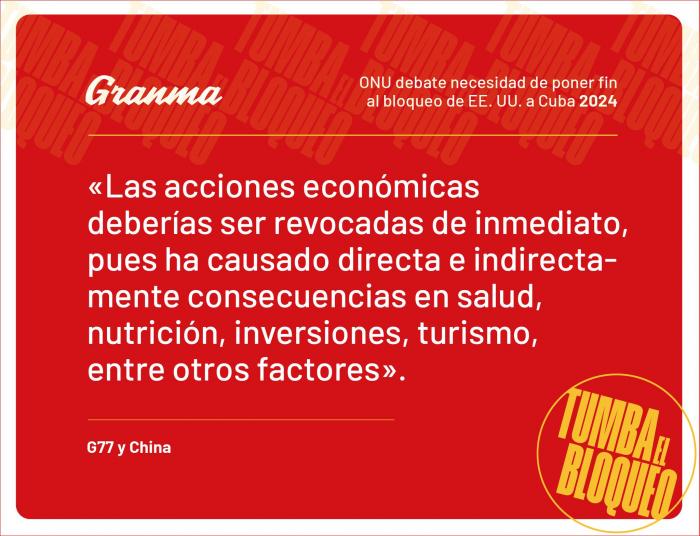 Este miércoles 30, el foro de 193 países votará la propuesta de Resolución de Cuba, que estima pérdidas por valor de 5 056,8 millones de dólares, como consecuencia del cerco, solo entre marzo de 2023 y el 29 de febrero de 2024.