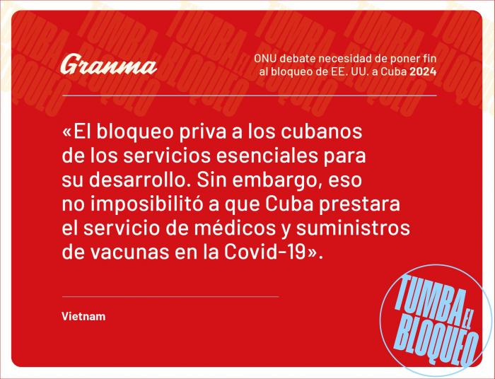 El representante de Vietnam precisó que su nación votará a favor de que se levante el bloqueo impuesto por Estados Unidos a Cuba y reiteró la solidaridad con el pueblo cubano.