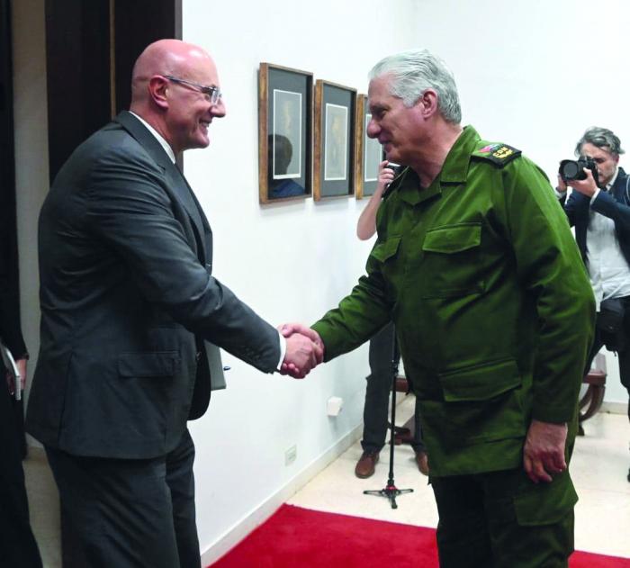 El Primer Secretario del Comité Central del Partido y Presidente de la República, Miguel Díaz-Canel Bermúdez, recibió, en la tarde de este viernes, en el Palacio de la Revolución, al vicepresidente del Gobierno de la Federación de Rusia, Dmitri Chernyshenko.