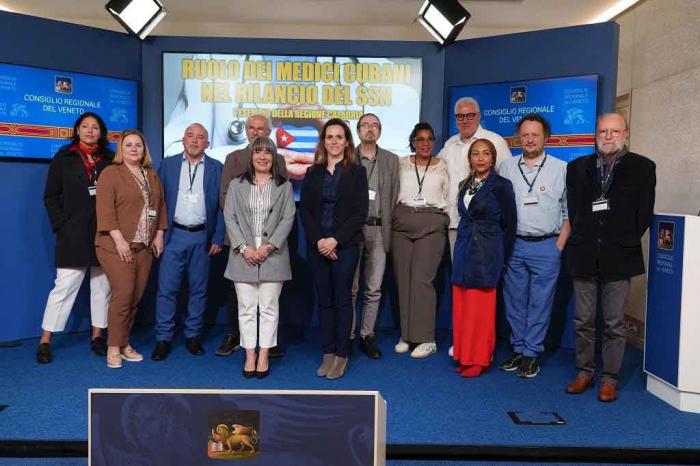 Ese encuentro, con sede en el veneciano Palazzo Ferro Fini, tuvo como tema «El papel de los médicos cubanos en el relanzamiento del Sistema Nacional de Salud: el ejemplo de la Región de Calabria», y fue promovido por la consejera regional Erika Baldin, del Movimiento Cinco Estrellas (M5S).
