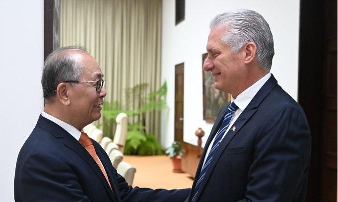 El Primer Secretario del Comité Central del Partido y Presidente de la República, Miguel Díaz-Canel Bermúdez, recibió ayer a Qiu Xiaoqi, representante especial del Gobierno de la República Popular China para Asuntos Latinoamericanos.
