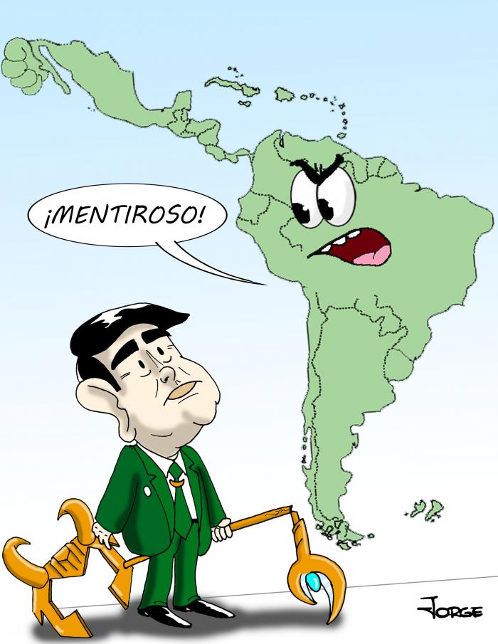 Habló de mitos de la Revolución Cubana. Dijo que el bloqueo no existe y que la popularidad universal de su Líder Histórico o la del Che Guevara son inmerecidas, empleando epítetos irrespetuosos, propios de un pigmeo insolente aludiendo a dos gigantes.