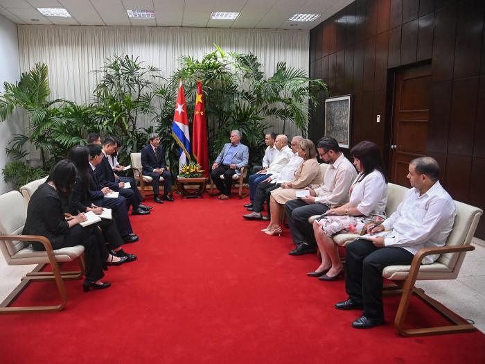 El mandatario, acompañado por el miembro del Buró Político y secretario de Organización del Comité Central, Roberto Morales Ojeda, recibió en la mañana de este martes, en el Palacio de la Revolución, a Li Zongyuan y la delegación que lo acompaña, como parte de la continuidad de los encuentros que mantuvieron en China, cuando Díaz-Canel recorrió y conoció en detalles la muestra expositiva de una institución cuya creación fue idea del Secretario General del Partido Comunista de China (PCCH) y Presidente de la República Popular China, Xi Jinping.