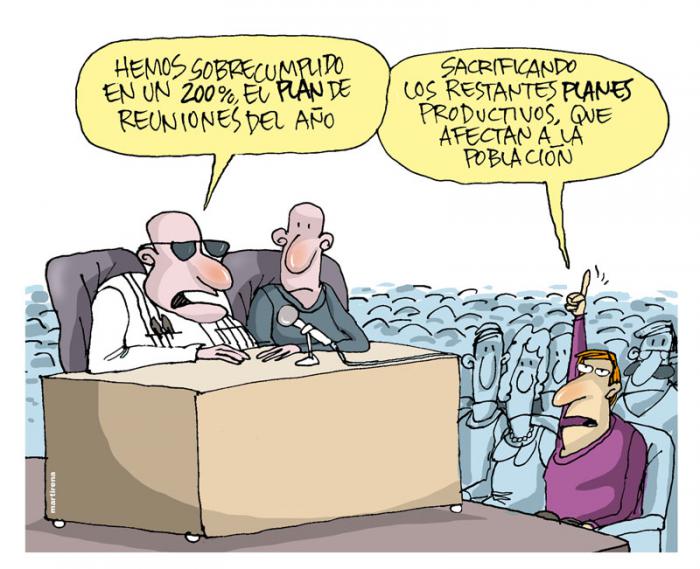 Y no es que deba declarársele la guerra, porque hay reuniones y reuniones, algunas de ellas muy necesarias, las cuales resultan ser concretas y bien conducidas, donde quien las preside toma, como se dice en buen cubano, el toro por los cuernos y va de manera directa al problema, sus responsables y las posibles soluciones. Claro, esas son las menos.