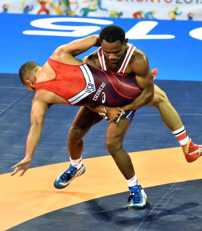 MISSISSAUGA, Toronto.—Yowlys Bonne entró al colchón con suma tranquilidad, siguió el juego de su contrario, el estadounidense Ángel Escobedo, hasta que finalmente se hartó de tanta pasividad y desplegó una ofensiva letal, espectacular, con su oponente volando por los aires tras una amplia proyección de categoría universal que valió el único metal dorado de Cuba este viernes.