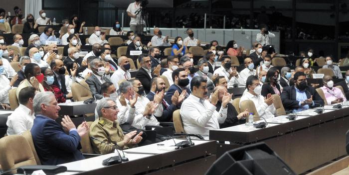 Si los anfitriones de esa Cumbre imperial consideraron que excluir a algunos de nuestros países de su cita era una sanción más, permítanme decirles que la recibimos como un reconocimiento. Ni mil sanciones unilaterales más podrán doblegar la vergüenza y la dignidad de los pueblos venezolano, nicaragüense y cubano (Aplausos), ya demasiado castigados y sancionados por este policía global para asustarnos por una exclusión más.