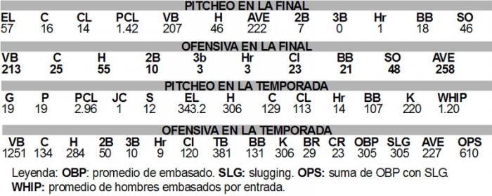 Sus monticulistas hicieron que el staff fuera el único que trabajara para menos de tres carreras limpias por juego; el que toleró la menor cantidad de jits en la temporada, el único que no pasó de diez jonrones permitidos, el que menos boletos otorgó; tuvo el mejor promedio de hombres embasados por entrada, con 1.20 y en consecuencia fue al que menos le pisaron el home. Una mirada a la tabla de su pitcheo en la disputa del cetro del borinque, bastaría para saber cuál fue la clave del éxito. Aunque es justo consignar que aún siendo la ofensiva más pobre de la campaña regular, en la etapa decisiva, consiguió compilar un 252 que fue el mismo average de la liga.