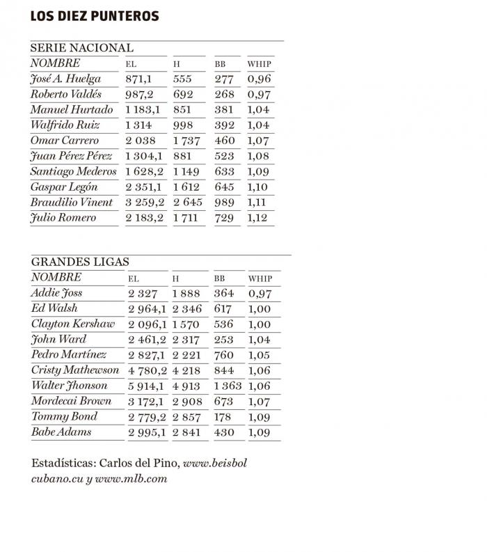 La efectividad del whip queda demostrada cuando apreciamos los nombres que conforman las tablas estadísticas. Los diez de la Serie Nacional fueron todos estrellas del montículo, multicampeones mundiales, panamericanos y de copas intercontinentales.