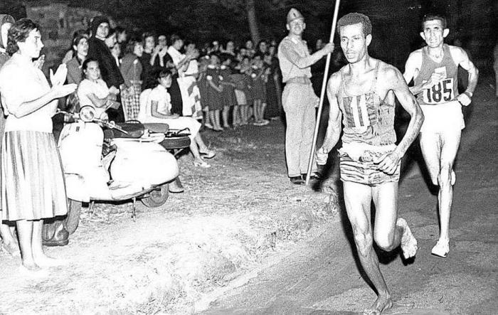Cual si fuera un mandato simbólico de su pueblo, el maratonista Abebe Bikila, un soldado de la guardia personal del emperador Haile Selassie, devoró los 42 kilómetros y 195 metros con sus pies descalzos, en busca de la línea de llegada en el Arco de Constantino. Desde allí partieron, 25 años antes, las tropas de Mussolini para conquistar Abisinia, antiguo nombre de Etiopía. Y él llegaría para revindicar a sus predecesores, coronando un histórico triunfo: el del primer negro africano en lo más alto del podio.