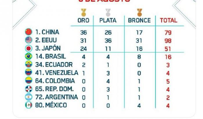 Sin embargo, nadie ha entendido muy bien cómo fue que un importante diario online en información deportiva obvió a Cuba del medallero correspondiente al 6 de agosto, cuando ya para entonces la Mayor de las Antillas consolidaba su puesto entre los primeros 20 países.