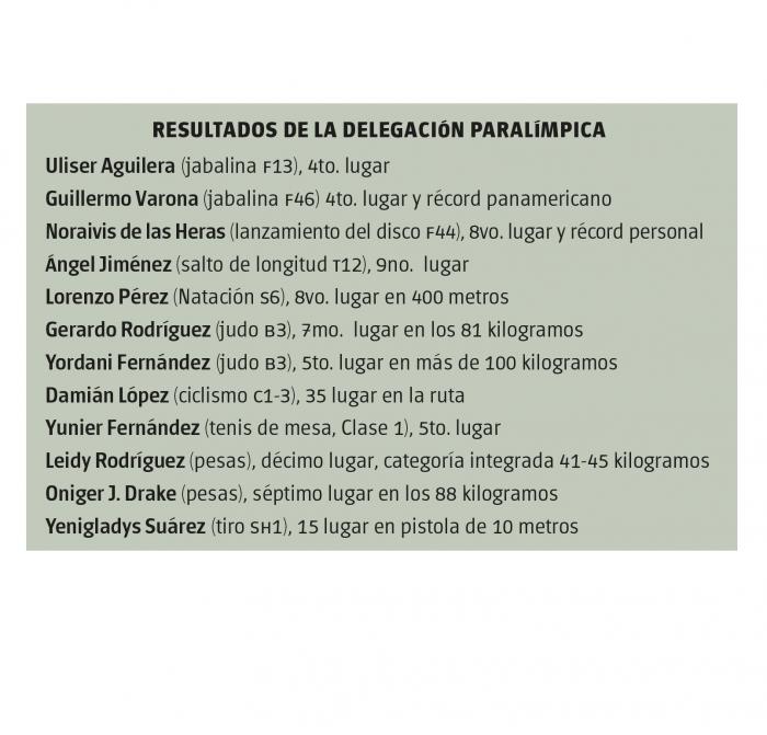 A la ocho veces campeona paralímpica, quien creció admirando a otra grande del Olimpo, Yipsy Moreno, y cuyo libro preferido es El ingenioso hidalgo Don Quijote de la Mancha, le escuché decir, en Lima, hace dos años: «No hubiera sido nadie sin mi Revolución, no hubiera sido nadie sin Fidel. Yo soy fidelista hasta que deje de respirar».
