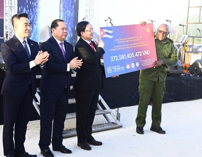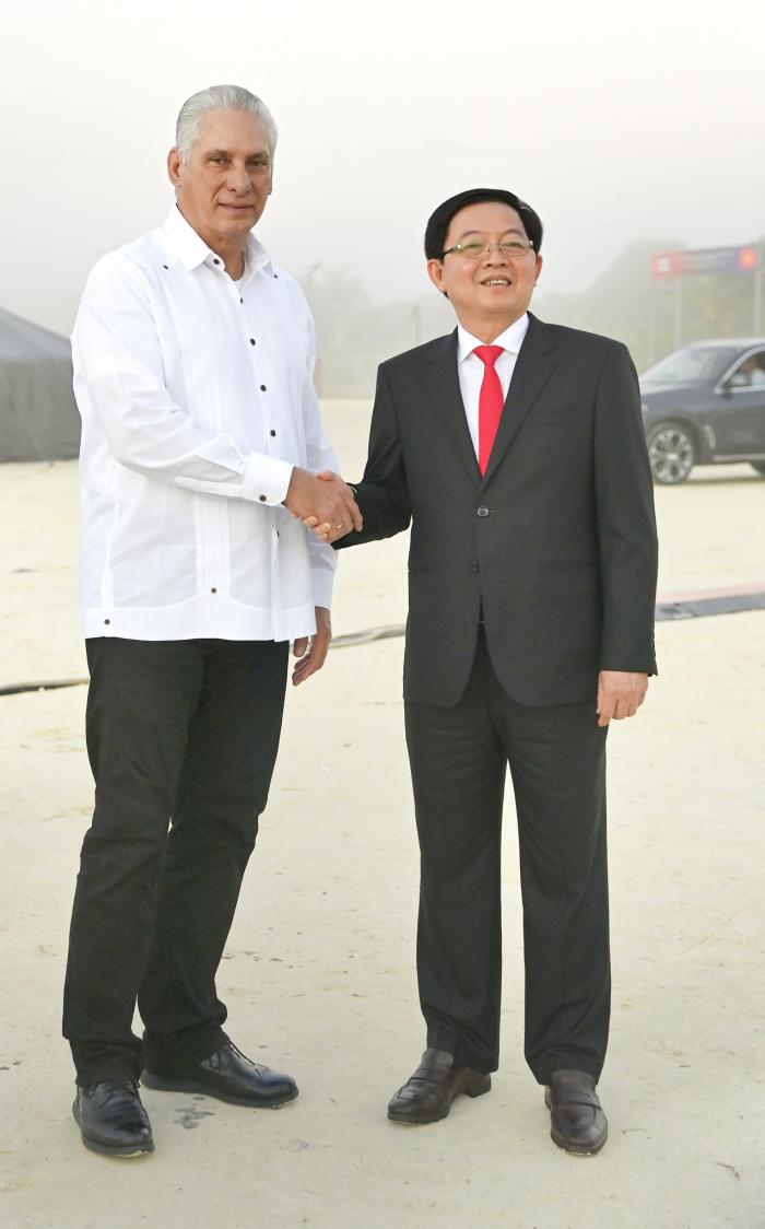 Así lo refirió el Primer Secretario del Comité Central del Partido y Presidente de la República, Miguel Díaz-Canel Bermúdez, quien en la mañana de este martes, junto a Ho Phuoc Dung, miembro del Comité Central del Partido Comunista de Vietnam y vice primer ministro de la República Socialista de Vietnam, encabezó las ceremonias por el 65 Aniversario del establecimiento de las relaciones diplomáticas y por el inicio de las obras del parque solar fotovoltaico Vista Alegre, en esta localidad.