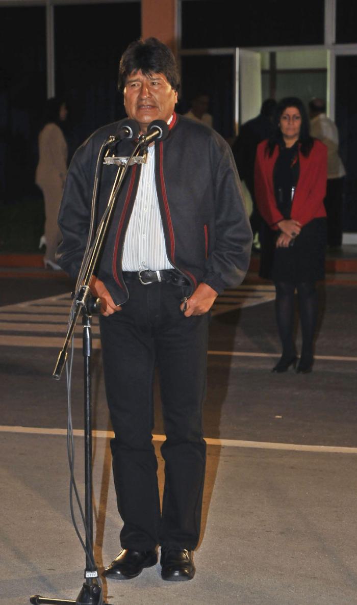 El jefe de Estado boliviano fue recibido en el aeropuerto internacional José Martí por Inés María Chapman, presidenta del Instituto Nacional de Recursos Hidráulicos.